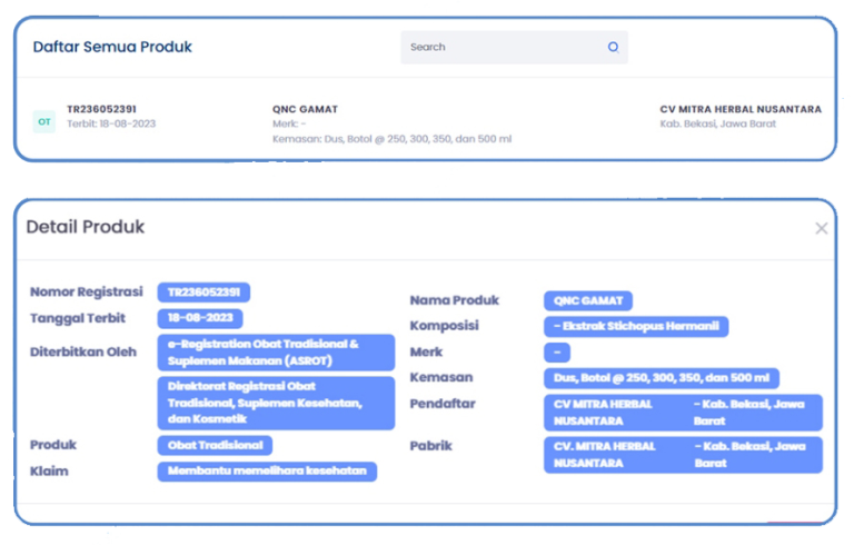 Legalitas : BPOM TR 213310581 & Halal MUI