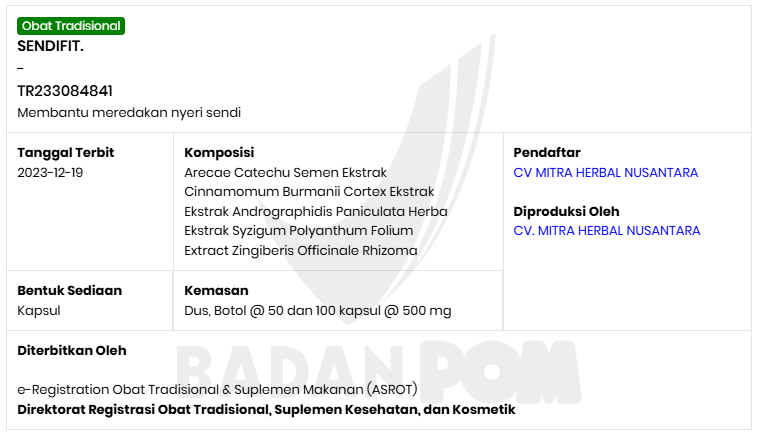 Konsumsi 2 kapsul SendiFit, 2 kali sehari setelah makan.